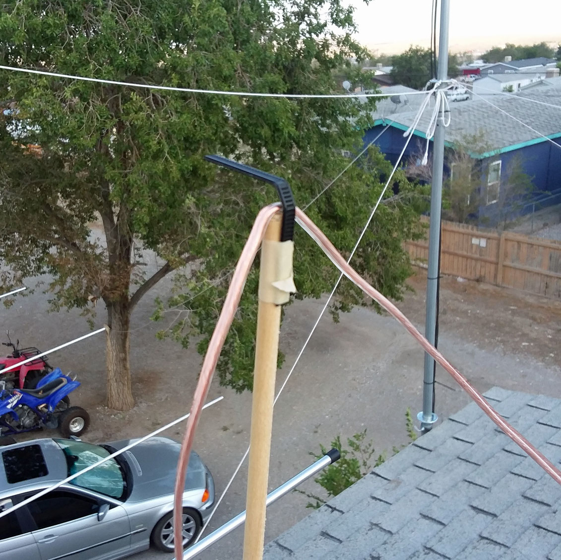 Just mounted in a temporary spot to where I can reach and work on the thing safely for now. I can pull the beam any direction I want to bring it closer to my being on the roof, and not having to think about fallin off! Its tied off for now to keep it from spinnin in the winds.