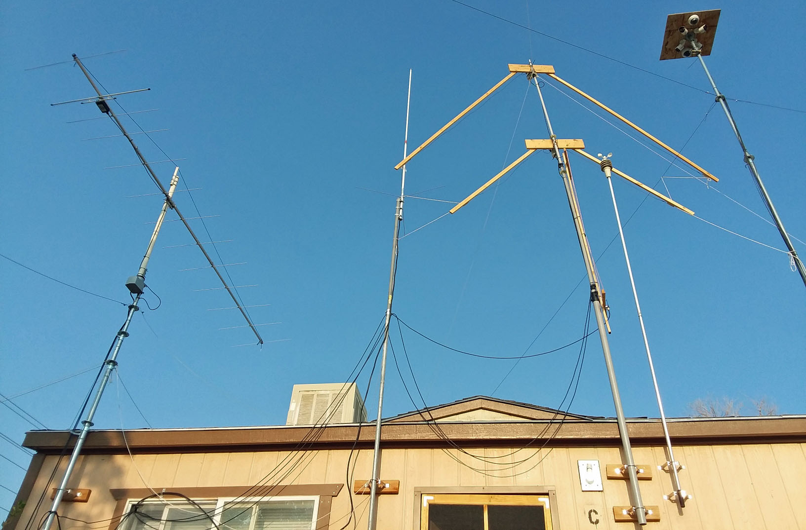 I lowered my 13 element beam down for repairs. The mast had spun loose in the rotor mount over time and with strong winds. Last time I had it down, I forgot to pin the mast and rotor so it would not spin like that. Live n learn I spoze. Beam was about 45 degrees off where I center started it at months ago. Plus, have new style antenna coming in the next week, an 8 element 2 meter cubical quad that I will use in place of the 13 element beamer.