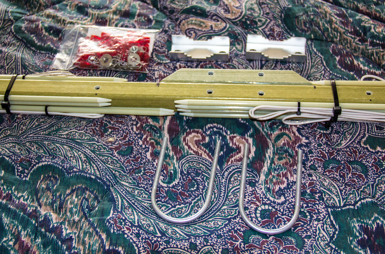 The way the beam came out of the shipping box. Nice, clean and simple. Boom is 8 feet long, 1 inch square hollow fiberglass 1/8 inch thick. All holes pre-drilled, etc.