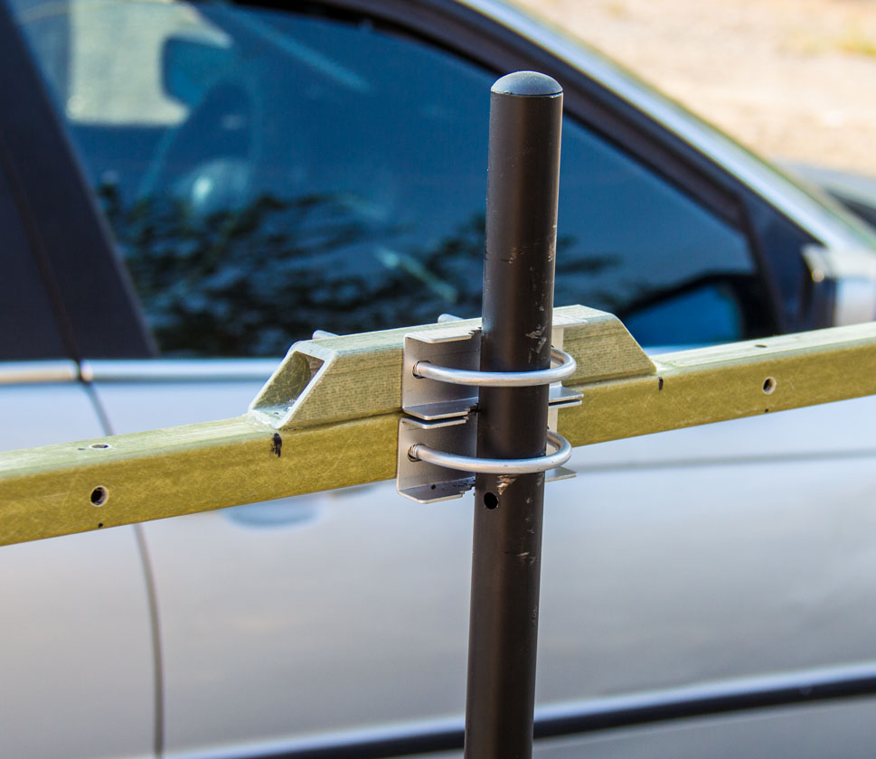 Close up view of how the spreaders are held in place on the boom. 4 clips, 1 on each side. Yes.. even the spreaders are pre-drilled and clips included.
