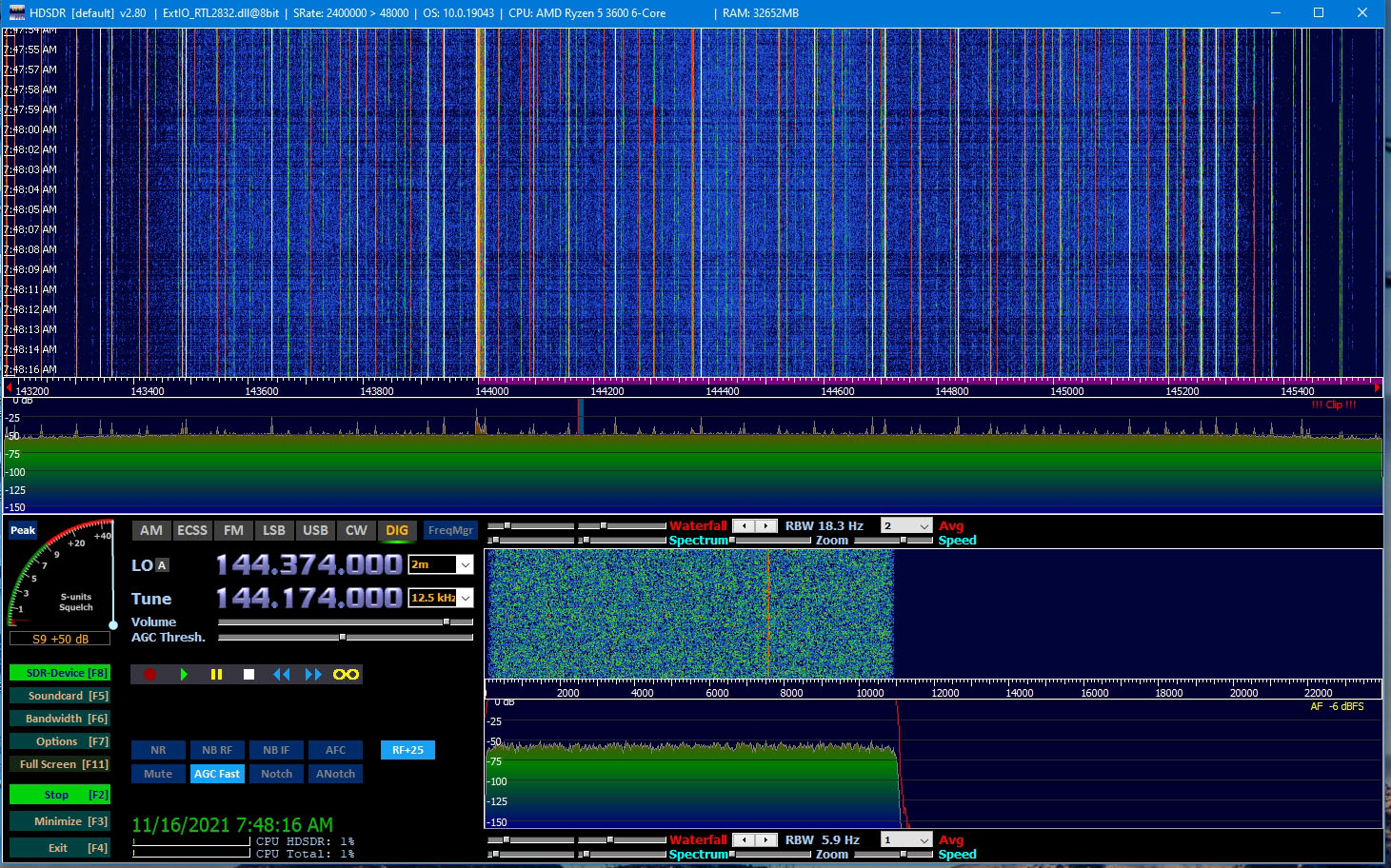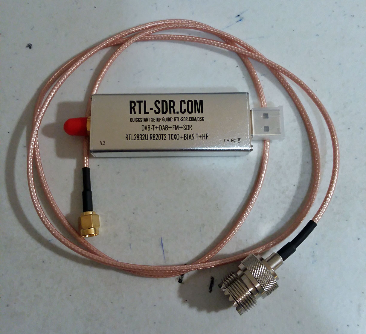 I heard some other Ham Radio friends of mine, talking about these "dongle" USB things that you could buy and set up your own SDR on your PC, with free software. So.. I got me one, with cable adapter to go from the SMA connection to a SO239 to hook some kind of antenna to it!!