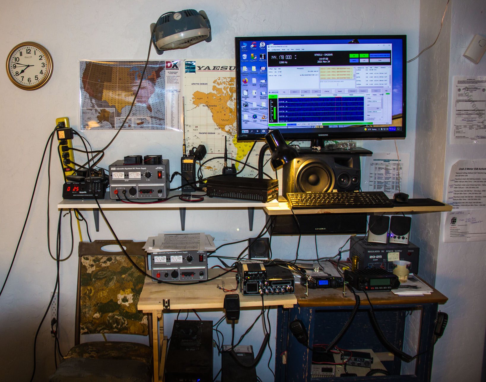 This is a total view of station and where the amplifier will be located at, when the time finally comes. I know.. wires all over the place! It will be eventually cleaned up!