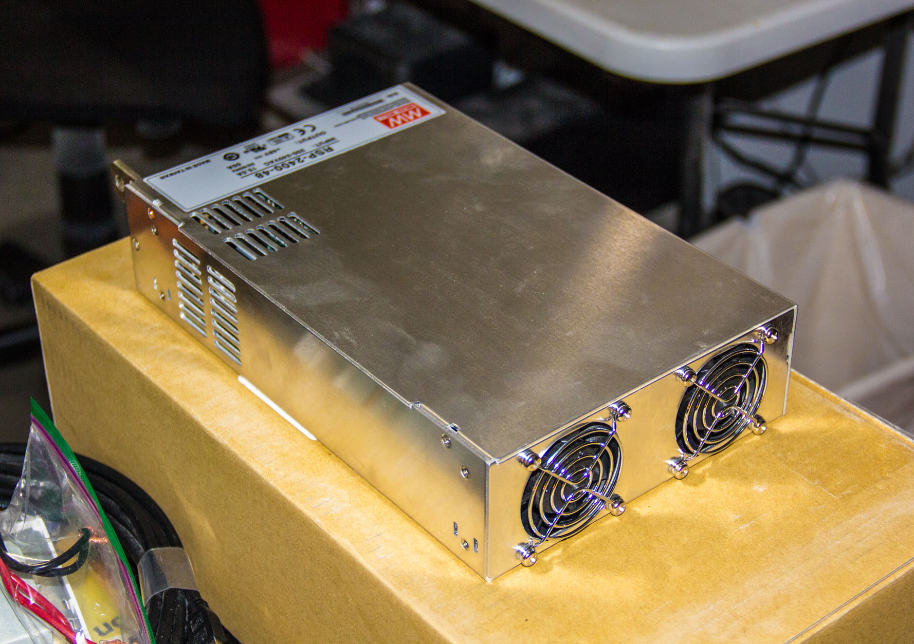 This is what the MeanWell RSP-2400-48 power supply, 240AC input, to 50V and 48A output, looked like when I took it out of the box.