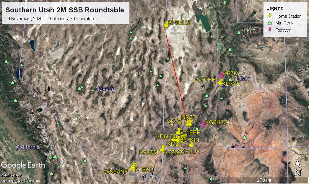 **On the evening of November 29th, 2020 I was able to make my first 2mtr SSB contact from Wendover! 220 miles away from here, to Southern Utah, Cedar City, UT. Jon, NR7T was the contact QSO. It will be one of my routeen SWOT Nets to participate in from now on :-) It is called the "Southern Utah 2mtr Roundtable", which meets on 144.250 USB on Sunday evenings at 7:00 pm MST.